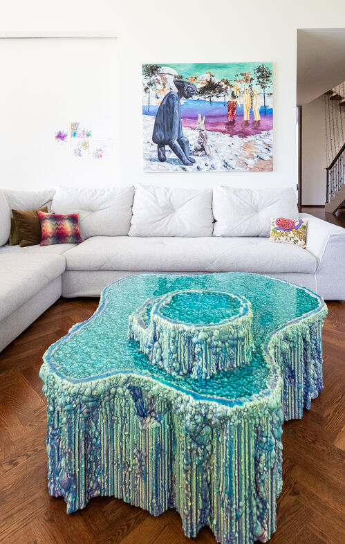 Along the way, Furlong has amassed an eclectic collection that includes painting, sculpture, furniture, photography, and prints. Many of the works she owns are by women artists, often people she knows or has met personally, such as LaKela Brown and Lauren Quin. Herself a mother and trained artist, Furlong approaches art collecting with the same people-first ethos that characterizes her nonprofit.
