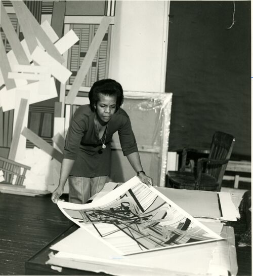 In the early 1960s, abstract artist Mavis Pusey had her heart set on becoming a full-time fashion designer. She had been living in New York since 1957, after moving to the city from Retreat, Jamaica, at the age of 29 (or 18, as the artist preferred to say) to study at the Traphagen School of Fashion. Unable to afford tuition, Pusey left and enrolled in the Art Students League with support from a Ford Foundation scholarship, but she maintained her ties with fashion by creating designs for clothing. At the Art Students League, she studied under the famed artist Will Barnet, who saw Pusey’s potential. The painter and printmaker encouraged Pusey to focus on art, telling her that it was her fate to be an artist and that she would become an incredible one.