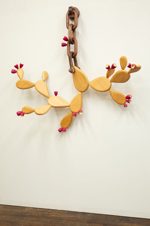 For his forthcoming exhibition, “HOST: Raul De Lara,” at The Contemporary Austin, he will substitute houseplants for wildflowers that are native to both Mexico and Texas, where De Lara and his family settled after immigrating to the United States. By depicting six-foot-tall Damianita daisies and firewheel flowers sprouting from small pots, he references his experience as a DACA recipient: rooted to the U.S., yet constrained and unable to flourish. “How can flowers but not people be native to two places?” he asked, adding that the wood he chose for the series is also native to both countries.
