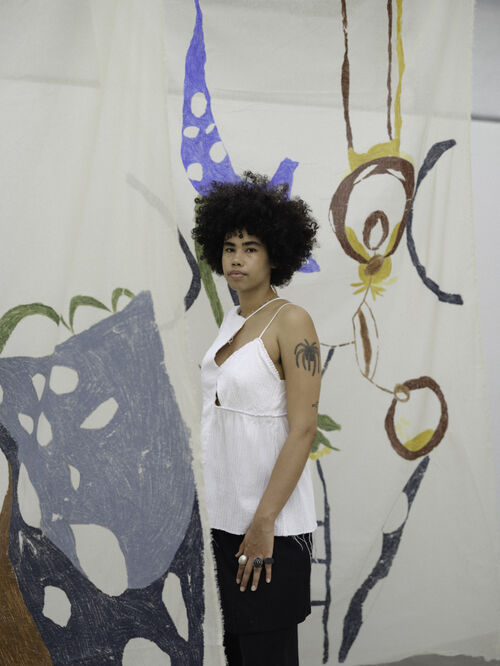 Almedia, a 2019 graduate of the Escola de Artes Visuais do Parque Lage in Rio de Janeiro, is currently an MFA candidate in painting and printmaking at Yale. Her recent exhibitions include a joint show with Tadáskía held simultaneously at Fortes D’Aloia & Gabriel’s and Quadra’s spaces in São Paulo last year. Almedia’s works are part of the permanent collections of Brazilian institutions, including the Museu de Arte do Rio, Instituto Inhotim, and Sesc Rio de Janeiro.