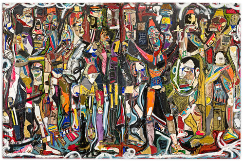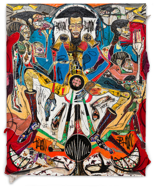 A sense of constant motion is embedded within Alexandre Diop’s monumental mixed-media works, which are inspired by his background as a dancer and musician. The Vienna-based artist combines fragments from the world around him—discarded bits of metal, food packaging, nails, and door hinges—into what he calls “object-images,” often depicting frenetic, lithe bodies. Diop, who is newly represented by Stephen Friedman Gallery, will open a solo exhibition, “Run For Your Life !,” there on September 19th, marking his debut with the gallery and in London.