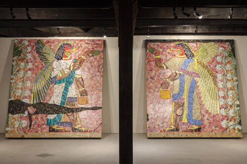 The artist describes his work as a “membrane,” and we see it cling to the building in the same way that history clings to human experience. The effect is a type of time travel. Neolithic cave drawings are collaged against snapshots of modern political uprisings, while our sinister ancient ancestors collide with a sinister present where children are becoming more scarce. Villar Rojas’s site-specific provocation bleeds into the Triennale’s surroundings in Seto City like a gateway to a parallel universe. It is a work that immerses us in the cycles of destruction and rebirth at play throughout “A Time Between Ashes and Roses.”