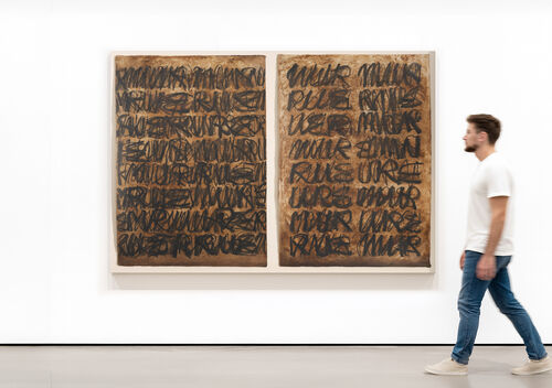 Often described as “calligraphic abstraction,” Lee’s paintings embody her belief in the union of matter and spirit, as well as the dialogue between East and West. Using rollers and knives to layer or scrape her canvases, she created dynamic surfaces that sometimes recall the strokes of Chinese characters. The resulting works merge physical action with meditative depth.