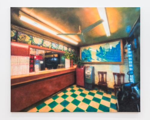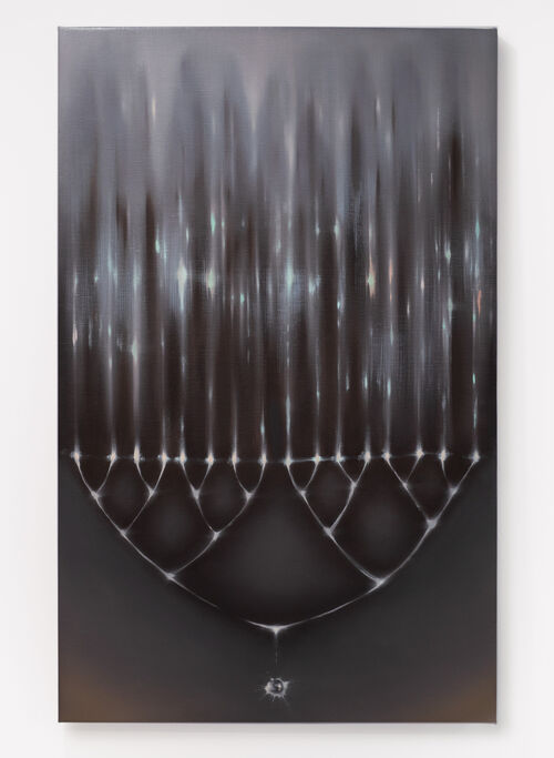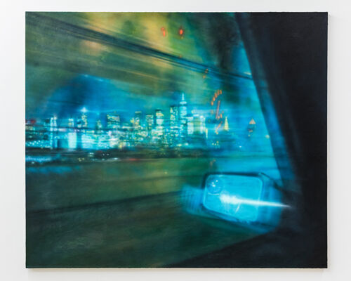 Through blurred city lights as seen from car windows and slices of neon signs, dreamy new paintings by Leon Xu evoke fleeting nocturnal encounters and half-remembered impressions. These glimpses make up “𝒜𝒻𝓉𝑒𝓇𝑔𝓁𝑜𝓌,” the Chinese artist’s second solo show with Zurich tastemaker Mai 36 Galerie, on view through November 1st. Xu drew inspiration from Martin Scorsese’s cult classic After Hours (1985), reinterpreting images from the film, which follows one man’s night of increasingly bizarre encounters in New York. The artist’s blurred, glowing scenes carry a similar sense of disorientation and intensity.