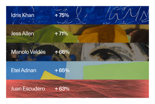 And finally, we share exclusive data on the artists who have seen the sharpest surges in commercial demand on Artsy this month.