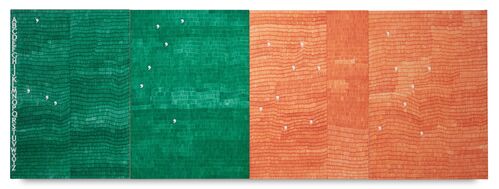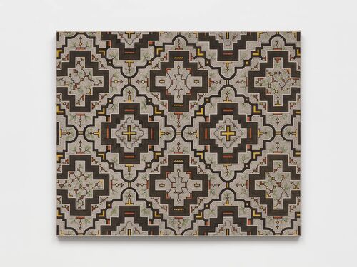 Peruvian artist Sara Flores, who will represent the South American nation at the Venice Biennale in 2026, is also interested in the reciprocal systems that make up our natural world. She is one of the most respected working practitioners of Kené: ancient, intricate drawings that are traditional in the Indigenous Shipibo-Konibo community. The textile works in White Cube’s booth are hand-drawn using traditional natural dyes and intertwine geometric patterns adorned with leaves and flowers.