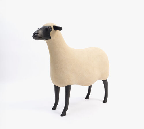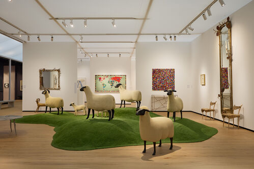 The sheep, which are priced individually between €500,000 and €600,000 ($583,202–$699,843), are surrounded by objects by Claude Lalanne—chairs, tables, benches—that each embody the duo’s unique fusion of Surrealism, nature-inspired design, and functional sculpture. “They’ve got bigger and bigger, and the prices have continued to rise, which is rather justifiable and wonderful,” noted Brown of the late duo's ongoing market ascent.