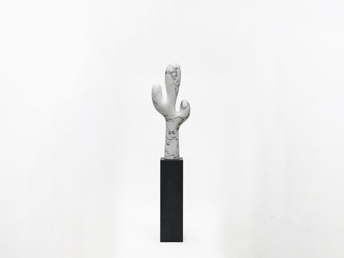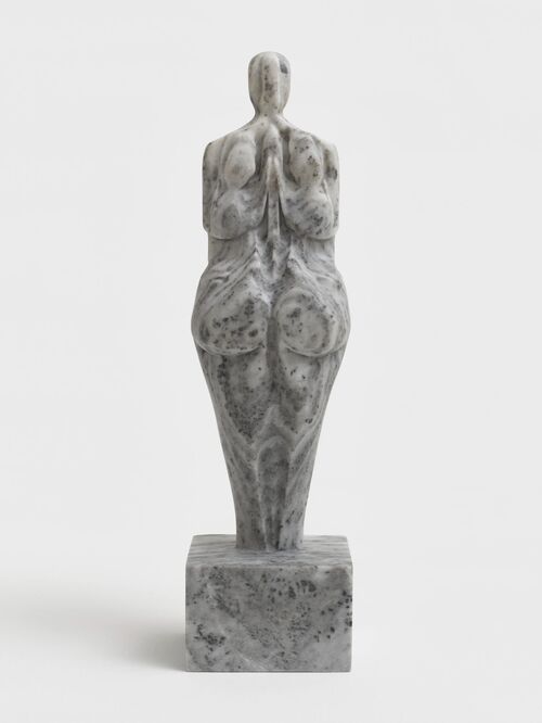 The booth’s final artist is Marguerite Humeau, the youngest of the trio, whose series of “Venus” sculptures is on view. These works are inspired by research showing that ancient cultures studied, or even ate, animal brains to create their relics. The small black alabaster statue Black Spirit, A female human of an unknown age has ingested a Tasmanian devil’s brain (2018), for instance, represents both a female figure and the furrowed ridges of a brain: weird and intriguing in equal measure. Pindell’s works are each priced between $200,000 and $875,000, Humeau’s between £65,000 ($87,080) and £200,000 ($267,940), and Flores’s between $65,000 and $125,000.