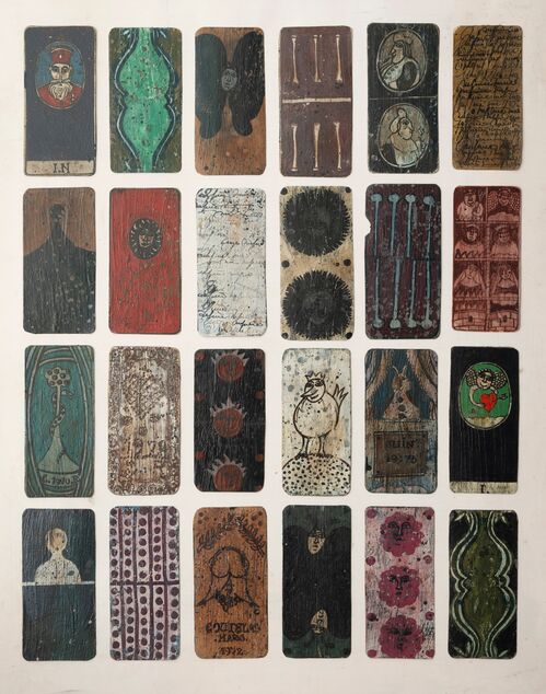 French artist Robert Coutelas resisted easy classification with a broad practice that combined elements of folk art, medieval illumination, Surrealist symbolism, and outsider art while never belonging fully to any. Born and based in Paris until his passing in 1985, he led a life often marked by material hardship and deliberate distance from the art world, choosing artistic solitude over commercial success.